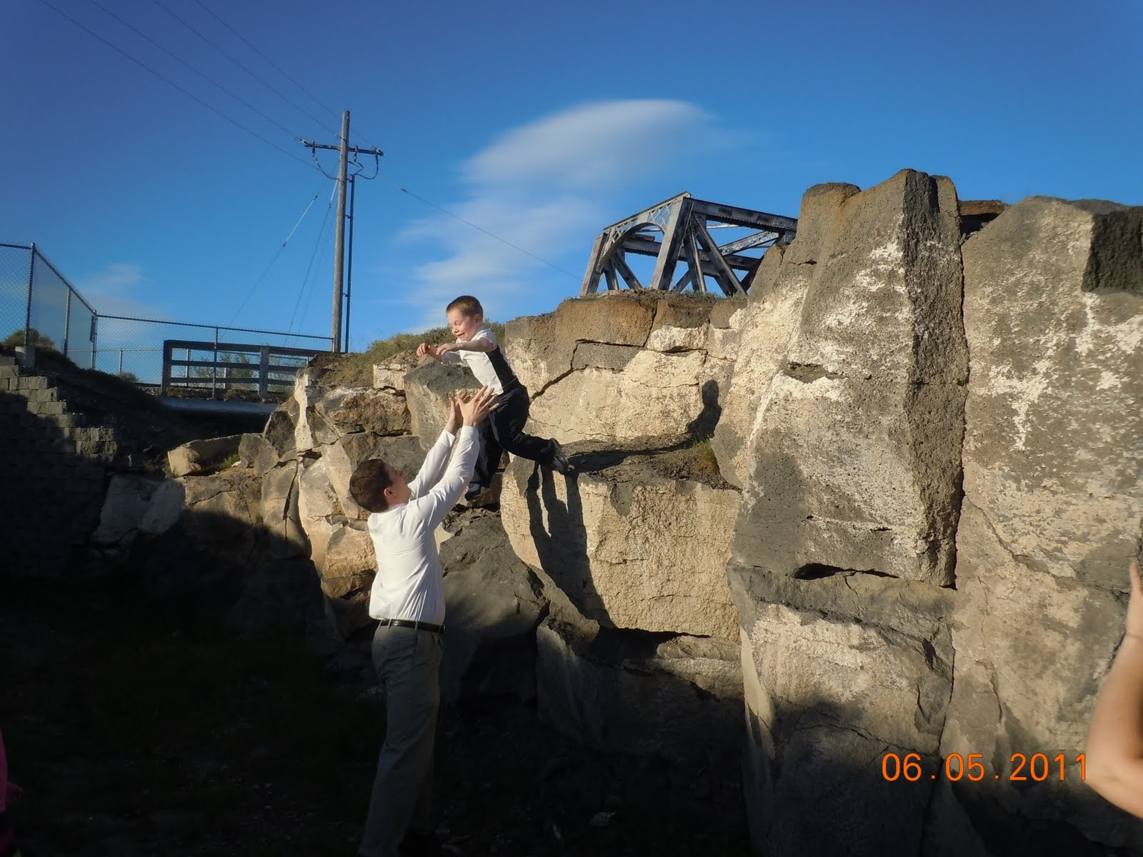 Sunday we went for a walk down by the river. Lots of fun places to throw rocks and take pictures. This is when my camera was still working so there were lots of extra pictures
